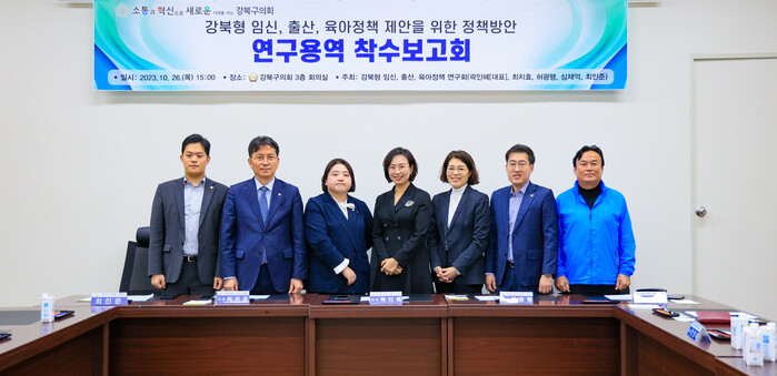 [시민일보 = 홍덕표 기자] 서울 강북구의회(의장 최치효) 의원연구단체 ‘강북형 임신, 출산, 육아정책 연구회’는 최근 구의회 3층 의원회의실에서 ‘강북형 임신, 출산, 육아정책 제안을 위한 정책방안 연구용역’ 착수 보고회를 개최했다.