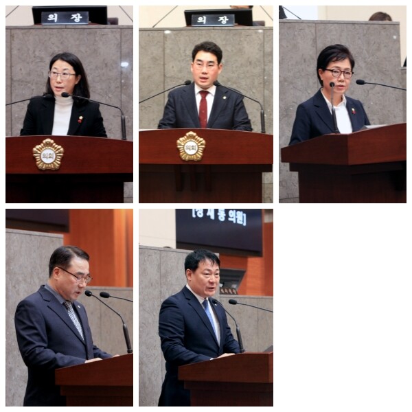 이날 5분 자유발언에 나선 의원들은 5명으로 고영찬·장규권·정재동·윤영희·고성미 의원이 각각 발언대 앞에 섰다.