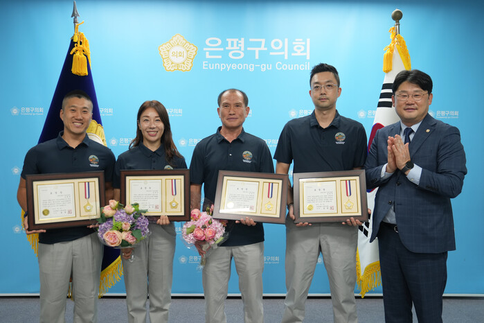[시민일보 = 이대우 기자] 서울 은평구의회(의장 송영창)가 최근 의장실에서 지역사회의 안전을 위해 헌신한 의용소방대원 4명에게 표창장을 수여했다.