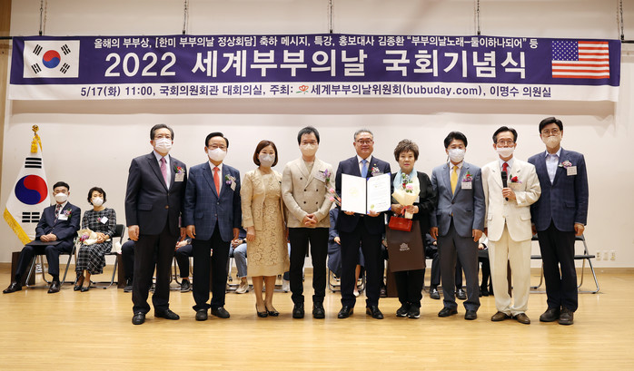 김명선 충남도의회 의장이 오는 21일 제28회 '세계 부부의날'을 앞두고 최근 국회 의원회관에서 열린 2022 세계 부부의날 국회 기념식에서 올해의 부부상을 받았다.