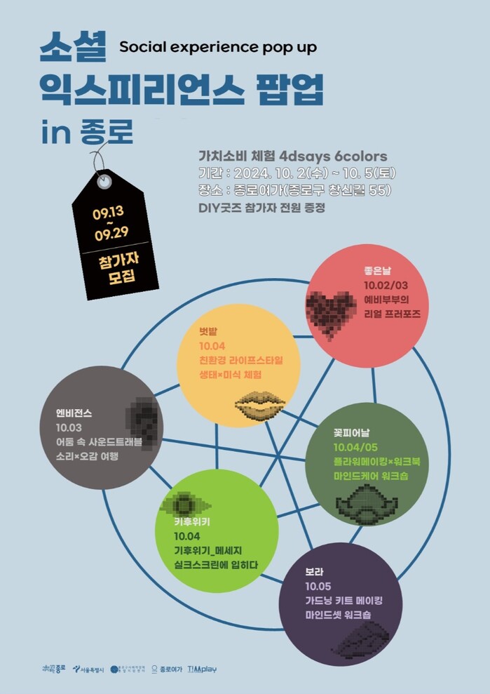 [시민일보 = 이대우 기자] 종로구(구청장 정문헌)가 사회적경제기업의 판로 지원 및 소비자의 가치소비 체험을 위한 종로구 사회적경제기업 팝업스토어 ‘소셜익스피리언스 in 종로’를 오는 5일까지 종로여가(창신길 55)에서 운영한다.