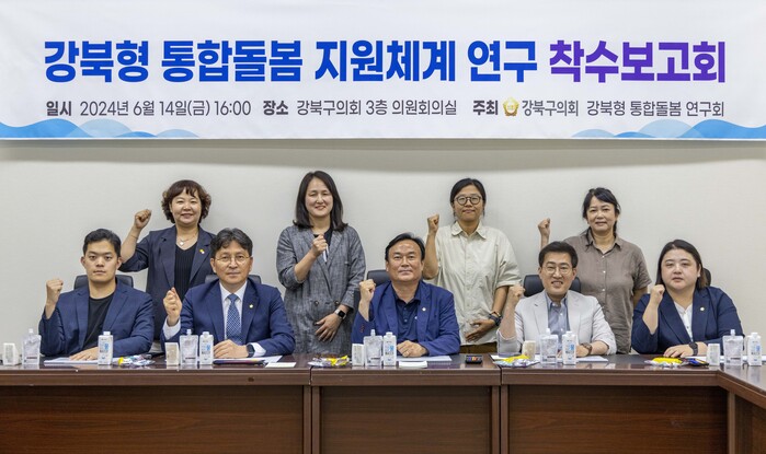 [시민일보 = 여영준 기자] 서울 강북구의회 의원연구단체인 ’강북형 통합 돌봄 연구회'가 최근 의회 3층 의원회의실에서 ‘강북형 통합 돌봄 지원체계 마련을 위한 정책방안 연구용역’ 착수 보고회를 열었다.