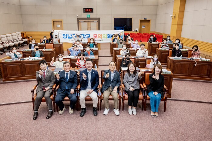 이날 ‘2023년 제1회 어린이 모의의회’에는 양남초등학교 5학년 학생 26명이 참여했으며, 추윤구 의장을 비롯해 신진호 부의장, 장길천 의회운영위원장, 김상배, 김상희, 최일환, 고상순 의원이 함께 했다.
