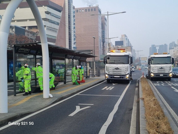 | ▲ 2025년 설맞이 고속터미널 청소 장면. (사진=서초구청 제공) |