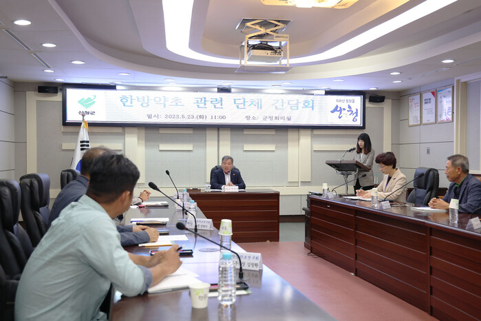 산청군은 23일 군청 군정회의실에서 한방약초 재배·가공·판매와 관련된 단체와 간담회를 추진했다고 밝혔다.