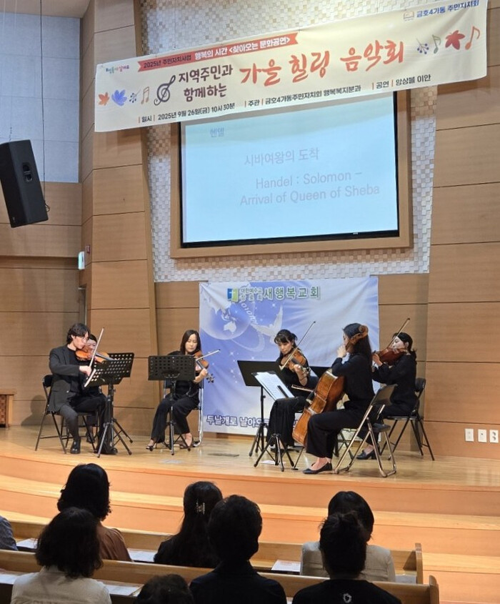 [시민일보 = 박소진 기자] 성동구 금호4가동 주민자치회 행복복지분과는 지난 9월 26일 지역내 어린이집, 경로당, 요양원 어르신들을 비롯해 지역 주민 50여명이 함께하는 '찾아오는 문화공연, 가을 음악회'를 성공적으로 개최했다.
