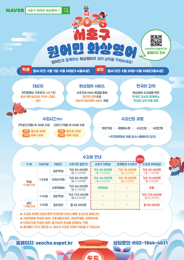 | ▲ ‘2026 서초구 원어민 화상영어‘ 안내문. (사진=서초구청 제공) |