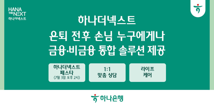 먼저, 하나은행은 오는 7월3일 머니&라이프 세미나인 '2025 하나더넥스트 페스타'를 개최한다. 하나은행 을지로 본점에서 진행 예정인 이번 세미나는 ▲슬기로운 상속증여 노하우 ▲급여를 대체할 수 있는 연금활용 전략 ▲행복한 노후 만들기 강의 등을 주제로 진행되며, 하나은행 거래여부와 관계없이 관심 있는 손님들은 누구나 참여가 가능하다.