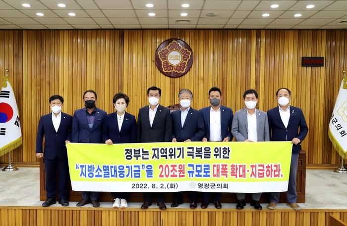 [영광=장수영 기자] 전남 영광군의회가 최근 열린 제266회 영광군의회 임시회 제2차 본회의에서 '지방소멸대응기금 지급 확대 및 인구정책'을 촉구하는 건의문을 만장일치로 채택했다.