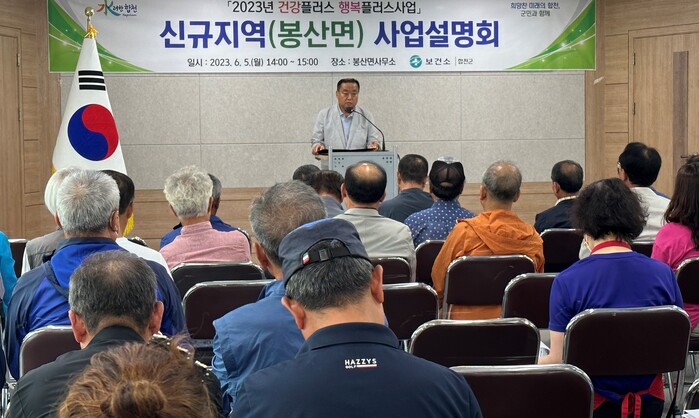 ‘건강플러스 행복플러스사업’은 표준화 사망비가 높은 지역을 대상으로 주민 스스로 건강문제를 찾아 해결하는 주민 주도형 건강증진사업이다. 합천군 봉산면은 2023년 신규지역으로 선정돼 2027년까지 총 5년 동안 사업이 진행될 예정이다.