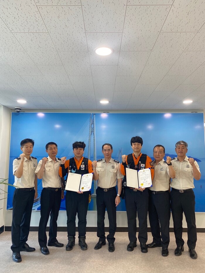 이날 인증서를 받은 수여자들은 신안소방서 신안119안전센터에서 근무하는 소방교 양지환, 소방사 박태정이다.