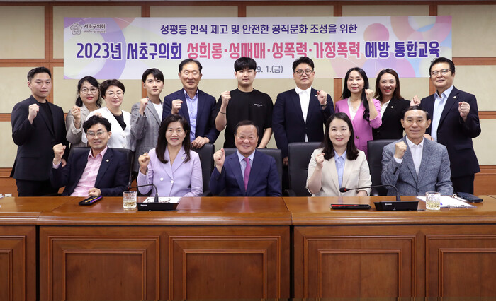[시민일보 = 이대우 기자] 서울 서초구의회가 제1위원회실에서 의원을 대상으로 성희롱·성폭력·가정폭력·성매매 예방 통합교육을 실시했다.