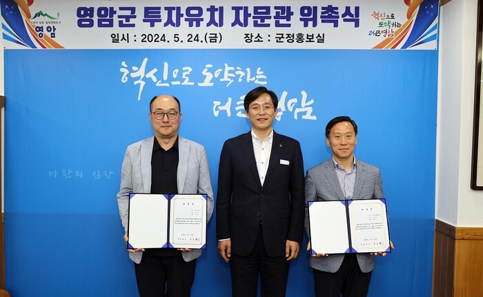 [영암=정찬남 기자] 전남 영암군(군수 우승희)이 지난 24일 군청에서 기업 투자유치를 이끌 외부 전문가 3명을 ‘투자유치 자문관’으로 위촉했다.
