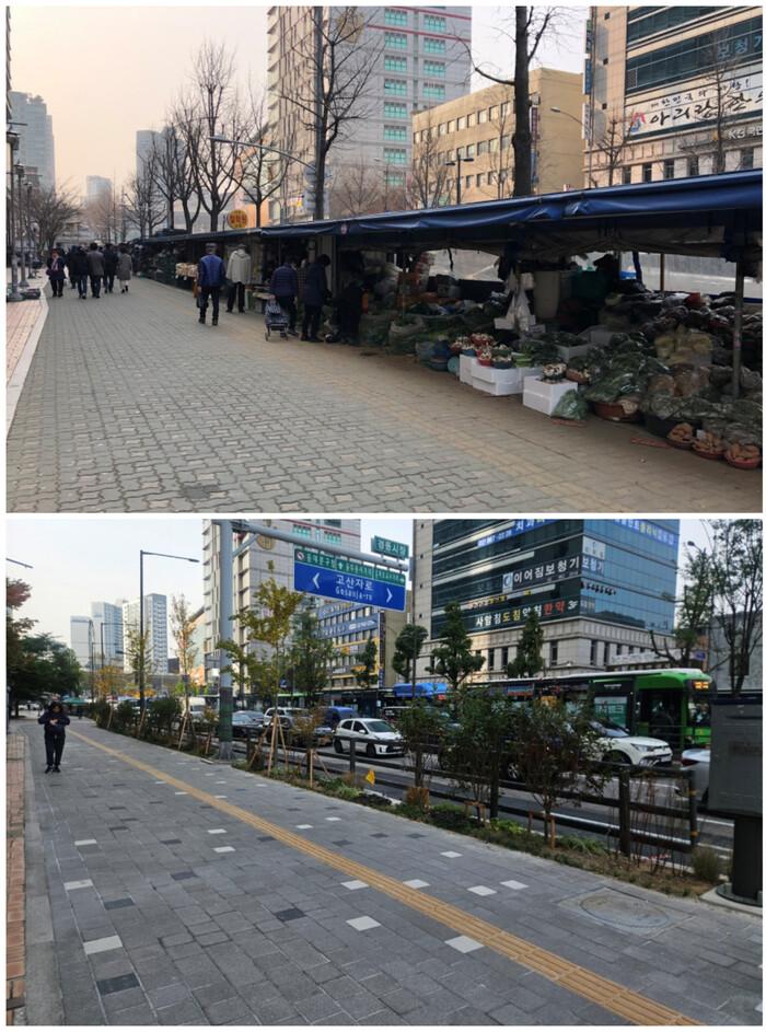| ▲ 동의보감타워 인근 노점 철거 전(위)·후(아래). (사진=동대문구청 제공) |