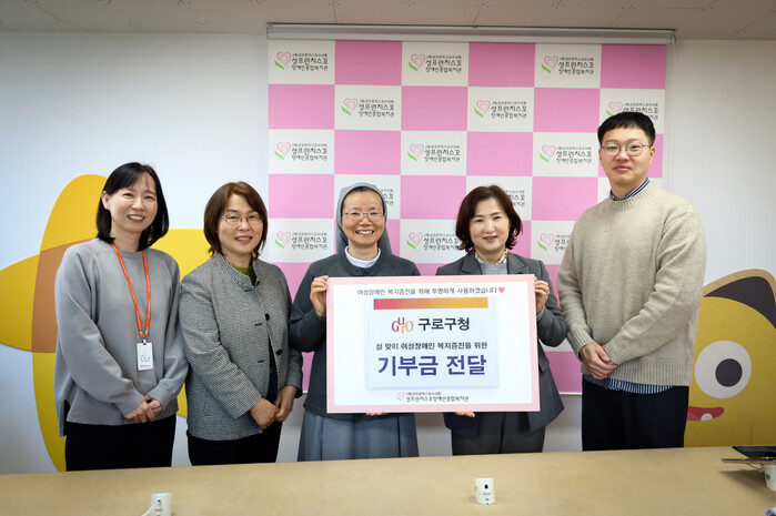 | ▲ 15일 구청 관계자가 성프란치스꼬장애인복지관에 기부금을 전달하고 있다. (사진=구로구청 제공) |