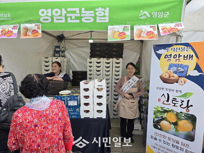 영암군 부스는 신선한 무화과, 배, 멜론 판매로 수도권 시민들의 발길을 사로잡았다.