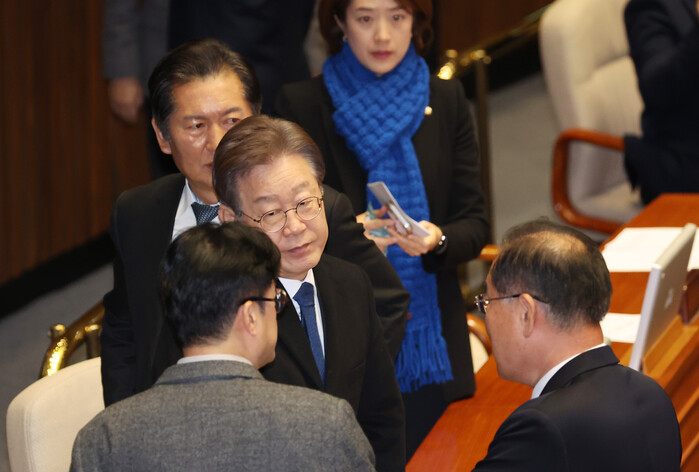 이 대표는 자신의 사법리스크가 다시 불거지는 것에 대한 입장을 묻는 기자들의 질문에 답하지 않았다.