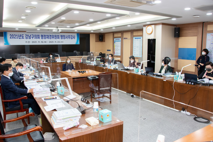 [시민일보 = 이대우 기자] 서울 강남구의회(의장 한용대)가 16일 강남구청 3층 큰회의실 및 지하 종합상황실에 설치된 행정사무감사장에서 소관 상임위원회별로 ''2021년 강남구 행정사무감사'에 돌입했다.