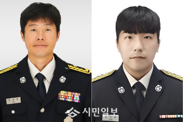 | ▲ 소방위 안경준, 소방사 김연웅 자료사진 / 강진소방서 제공 |
