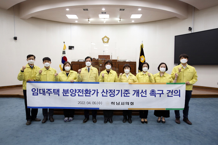 하남시의회 의원 전원은 민간임대주택의 우선 분양권과 합리적 산출기초에 의한 분양전환가 산정방식에 대한 기준과 방안을 마련해줄 것을 촉구했다.