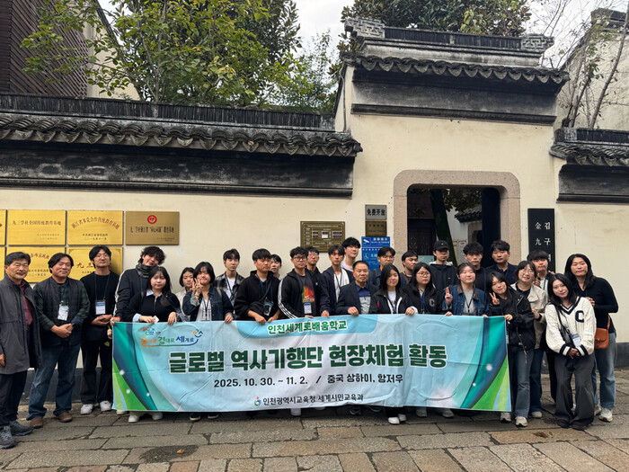 [인천=문찬식 기자] 인천광역시교육청(교육감 도성훈)은 인천세계로배움학교 ‘2025 글로벌 역사기행단’이 10월 30일부터 11월 2일까지 3박 4일간 중국 상하이와 항저우에서 현장체험 활동을 마쳤다고 밝혔다.