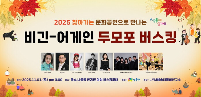 [시민일보 = 박소진 기자] 서울 성동구(구청장 정원오)는 오는 11월1일 옥수나들목 한강변에서 2025 ‘두모포 버스킹’을 개최한다고 밝혔다.