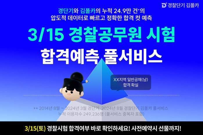 [시민일보 = 여영준 기자] 에스티유니타스의 경찰공무원 시험 전문 브랜드 ‘경단기’가 경찰공무원 필기시험 합격을 예측하는 풀서비스를 공개하며, 이에 맞춰 다양한 이벤트를 진행한다.