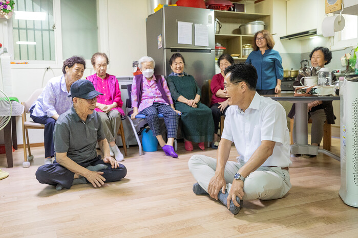 | ▲ 지역내 경로당을 방문해 어르신들과 소통하는 이기재 양천구청장. (사진=양천구청 제공) |