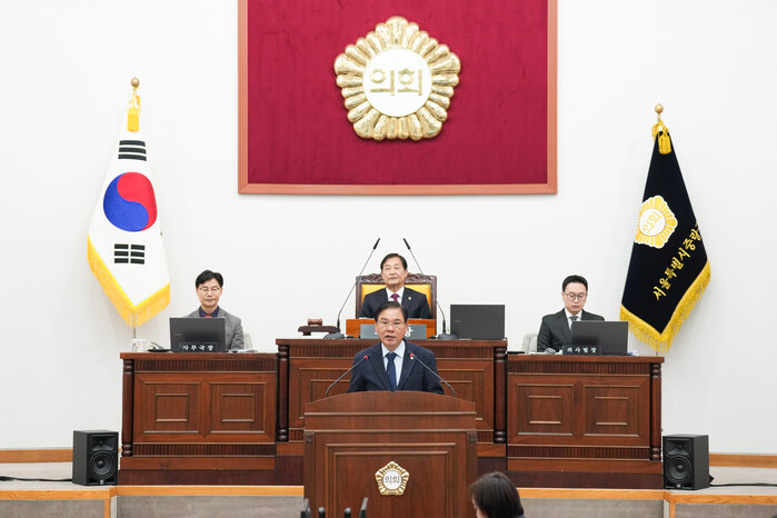| ▲ 이윤재 중랑구의회 의원이 5분 발언을 하고 있다. (사진=중랑구의회 제공) |