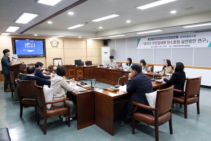 | ▲ 주민참여형 탄소중립 실천방안 연구 용역 최종보고회가 진행 중인 모습. (사진=동작구의회 제공) |
