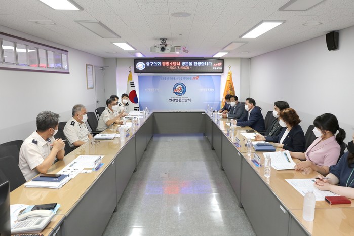 전체의원이 함께 참여한 이번 현장방문은 ▲인천중부소방서를 시작으로 ▲인천출입국외국인청 ▲서해5도특별경비단 ▲인천국제공항공사 ▲영종소방서 순으로 이뤄졌으며, 지역발전을 위해 상호간의 긴밀한 소통이 필요하다는 점을 강조하고, 상생 협력해 나갈 방안을 모색하는 시간을 보냈다.