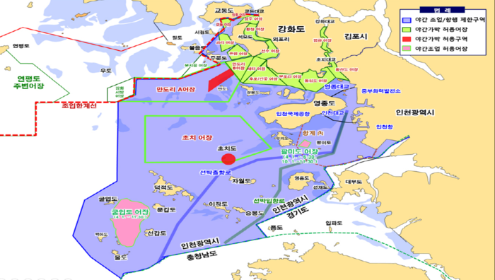 현행「어선안전조업 및 어선원의 안전·보건 증진 등에 관한 법률」에 따라 해양수산부는 인천광역시 해역의 ‘일시적 조업 또는 항행 제한’을 공고하고 있다. 이로 인해 강화군 해역의 어선 출입항은 일출부터 일몰까지로만 한정된다.