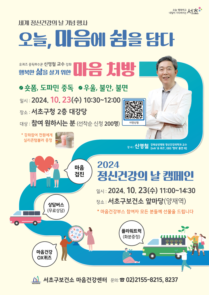 | ▲ 세계 정신건강의 날 기념행사 ‘오늘, 마음에 쉼을 담다’ 포스터. (사진=서초구청 제공) |
