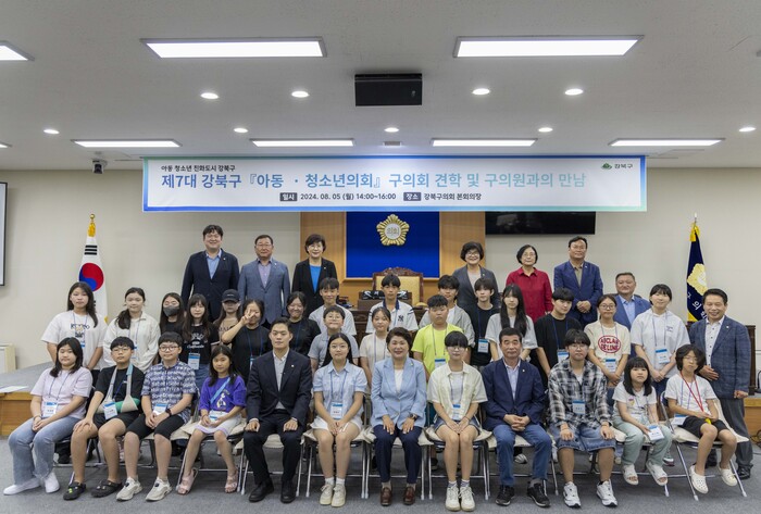 [시민일보 = 여영준 기자] 서울 강북구의회(의장 김명희)가 최근 제7대 강북구 아동·청소년의회 의원 28명을 초대해 구의회 본회의장에서 구의회 견학 및 구의원과의 간담회를 했다.