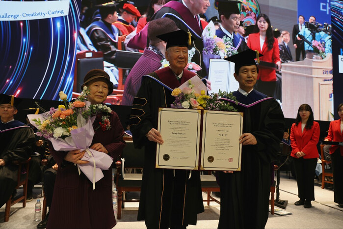 카이스트는 “이중근 회장님의 지원은 과학기술계가 혁신의 토대가 되는 학문적 기반을 공고히 다지는 데 큰 도움이 되고 있으며 국가와 사회에 기여한 공로를 인정받아 명예박사 학위를 수여했다”고 밝혔다.