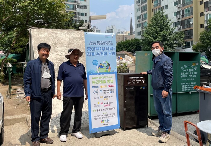 | ▲ 종이팩 전용 수거함 설치 모습. (사진=성동구청 제공) |