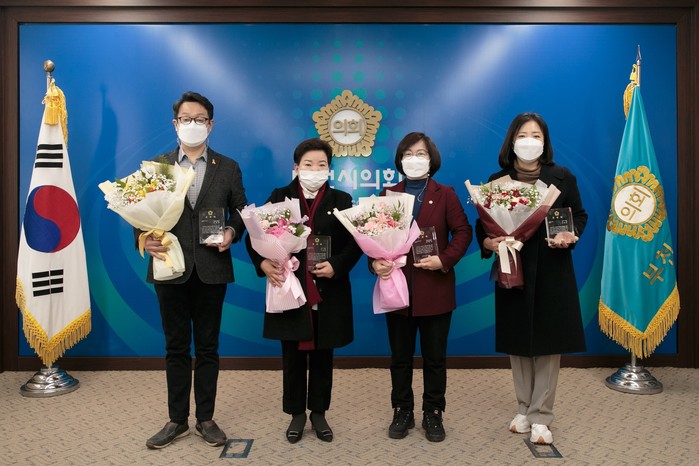 [부천=문찬식 기자] 경기 부천시의회가 김성용, 송혜숙, 구점자, 양정숙 의원이 경기도시·군의회의장협의회가 주관하는 의정활동 최우수 의원으로 선정돼 표창패를 수상했다고 9일 밝혔다.
