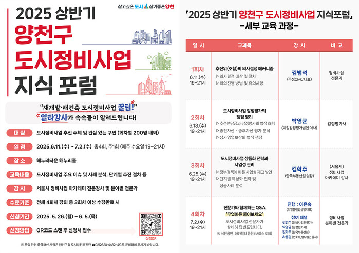 | ▲ 2025 상반기 양천구 도시정비사업 지식포럼 홍보 이미지. (사진=양천구청 제공) |