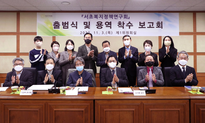 [시민일보 = 이대우 기자] 서울 서초구의회(의장 오세철)가 의회 제1위원회실에서 의원연구 단체인 ‘서초복지정책연구회(이하 연구회)’를 출범하고 첫 일정으로 연구용역 착수보고회를 열었다.