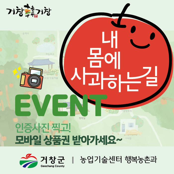 거창군은 6월 2일부터 10,000명이 참가할 때까지 ‘내 몸에 사과하는 길’ 거창사과 체험 SNS 인증사진 이벤트를 진행한다.