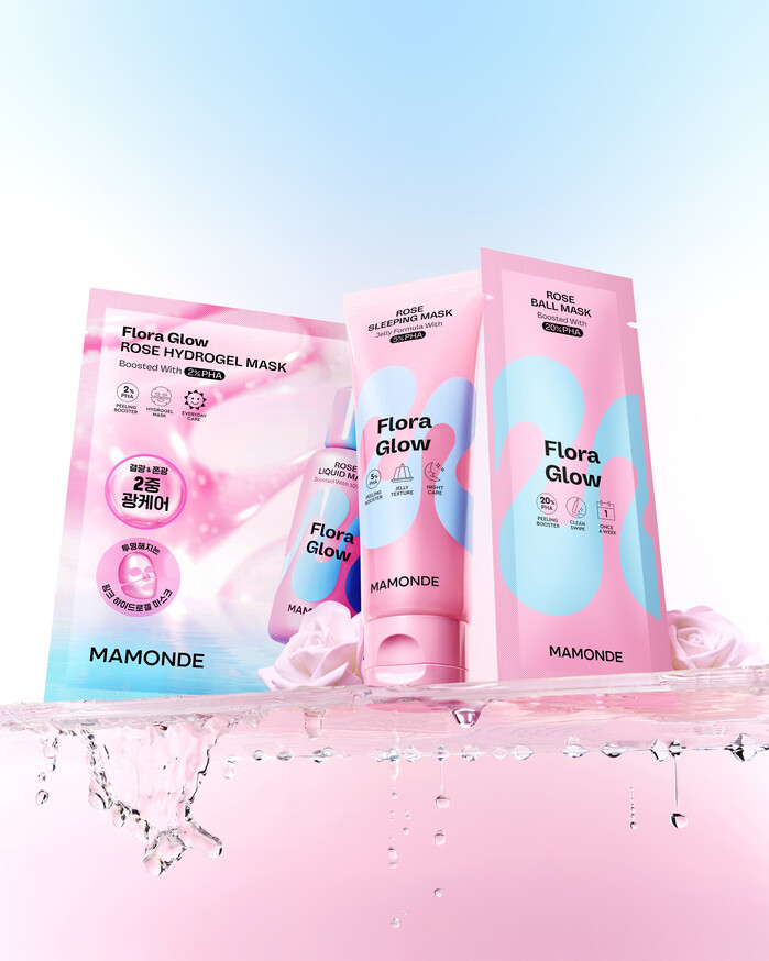 신제품은 '하이드로겔 마스크', '슬리핑 마스크', '볼 마스크' 3종이며, 수분 결광 관리에 특화된 제품들로 피부 컨디션과 선호 제형에 따라 선택 가능하다. '플로라 글로우 로즈' 라인의 핵심 성분이자 차세대 필링 성분인 PHA가 공통 함유되어 있으며, 탄력에 도움을 주는 '로즈PDRN'과 '비건 유사 콜라겐'이 추가되었다. 마몽드만의 차별화된 기술력이 적용돼, PHA가 피부 표면의 묵은 각질을 제거한 후 스킨 부스팅 성분들을 피부에 흡수시킨다.