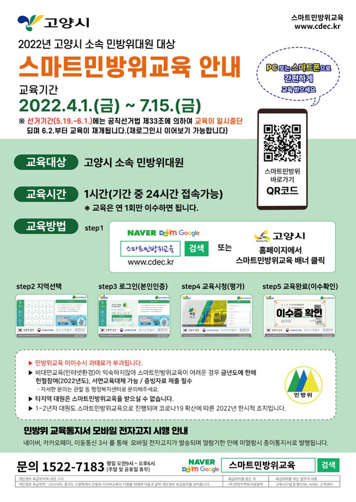 [고양=이기홍 기자] 고양시는 코로나19 확산에 따라 2022년 민방위교육을 사이버교육으로 실시한다.