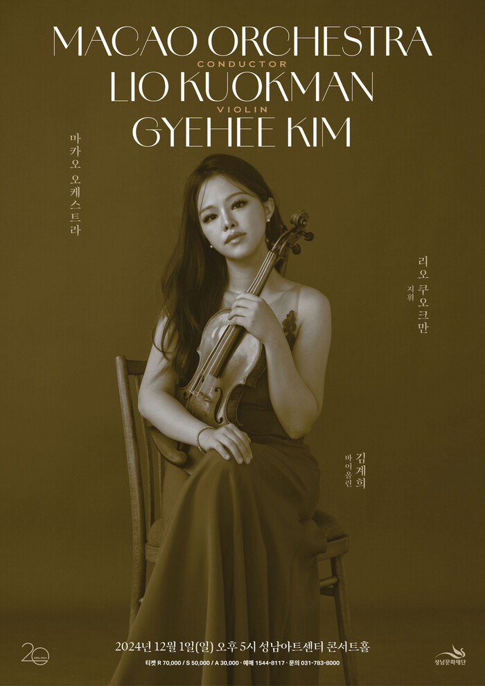 성남문화재단(대표이사 서정림)이 ‘마카오 오케스트라, 리오 쿠오크만 & 김계희’ 공연을 오는 12월 1일(일) 성남아트센터 콘서트홀에서 개최한다.