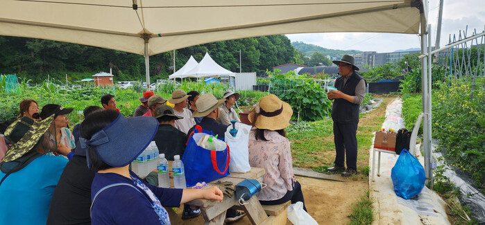 | ▲ 지난해 귀농·귀촌 프로그램 참여자들이 실습을 위해 교육을 듣고 있다. (사진=구로구청 제공) |