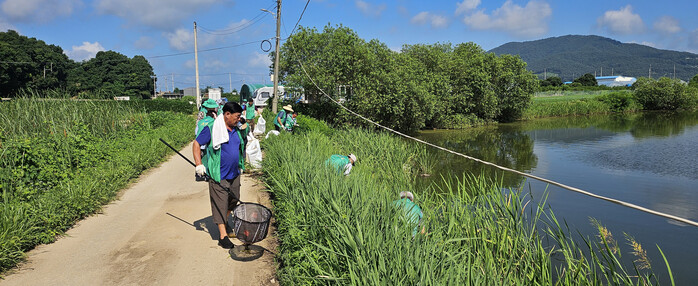 이날 회원 26명은 폐기물을 수거하며 깨끗한 하천환경 조성에 일조했고, 특히 빗물에 떠내려온 쓰레기를 집중 수거하기 위해 뜰채.갈퀴를 이용하면서 적극적인 정화 활동을 펼쳤다.