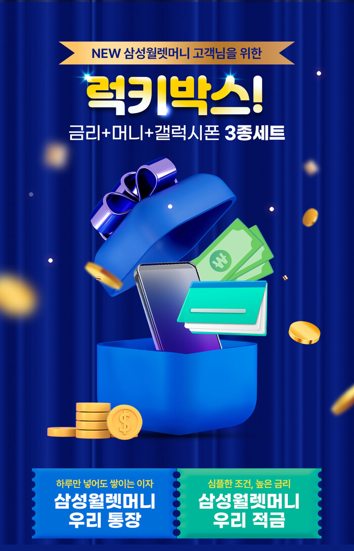 이 외에도 우리은행은 ‘NEW 삼성월렛머니 고객님을 위한, 럭키박스!’ 이벤트를 연말까지 진행한다. 응모 고객에게는 선착순으로 최대 1만8000 머니(20만명)를, ‘삼성월렛 머니’를 1회 이상 충전하면 최대 2만 머니(20만명)를 제공한다. 아울러 ‘삼성월렛머니 우리 통장’과 ‘삼성월렛머니 우리 적금’을 모두 가입한 고객 중 100명을 추첨해 삼성 갤럭시 폴드7·플립7·울트라 워치 등을 증정한다.