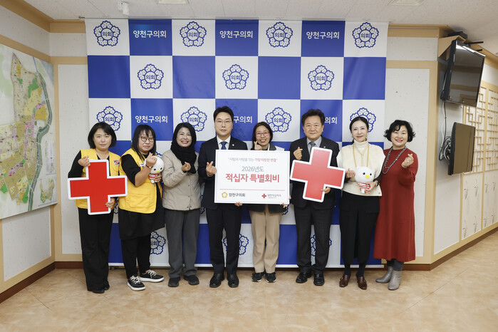 [시민일보 = 박소진 기자] 서울 양천구의회(의장 유영주)가 최근 대한적십자사 서울지사에 2026년 적십자 특별회비를 전달하며, 지방의회로서 지역사회 사회적 안전망 강화에 동참했다.