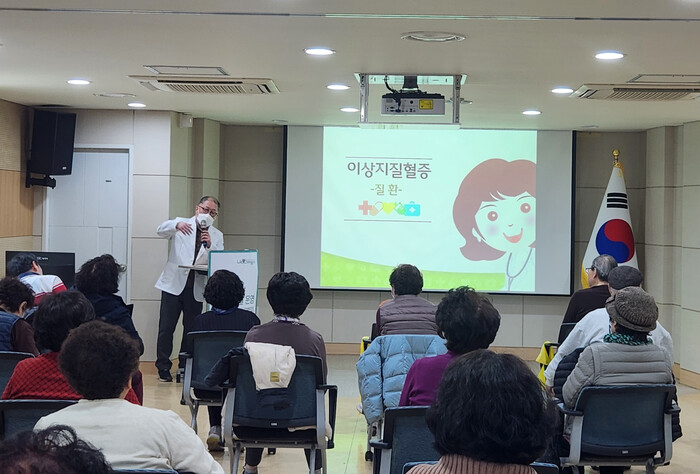 영양교육은 식생활에 따른 이상지질혈증의 종류, 고혈압 원인과 기본 관리법, 실생활에 적용할 수 있는 식사 원칙 등을 제시한다.