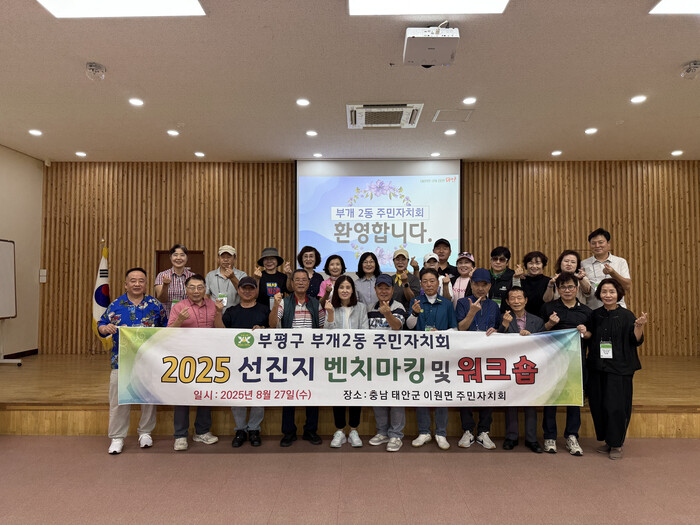 [인천=문찬식 기자] 인천 부평구(구청장 차준택) 부개2동 주민자치회는 지난 27일 충청남도 태안군 이원면을 방문해 주민자치 역량 강화를 위한 선진지 벤치마킹 및 워크숍을 진행했다.