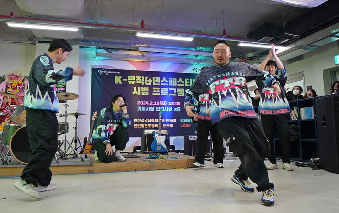 이어서 6시에는 K-뮤직&댄스 페스티벌 사업의 시범 공연이 열렸다. 거북시장 인근 인천석남서초등학교 밴드부를 중심으로 인천명현초등학교 밴드부, 고등학생과 대학생으로 이뤄진 나유타 밴드, 그리고 서구 출신의 직장인으로 이뤄진 막판패밀리의 댄스 공연까지 다채로운 무대를 볼 수 있었다. 특히 인천석남서초등학교 밴드부 지도교사인 황진호 선생님을 중심으로 밴드부 간 협업 연주로 공연은 더욱 풍성했다. 현장에는 학부모를 비롯한 시장 상인, 인근 주민 등 관객 140여명이 함께했다.